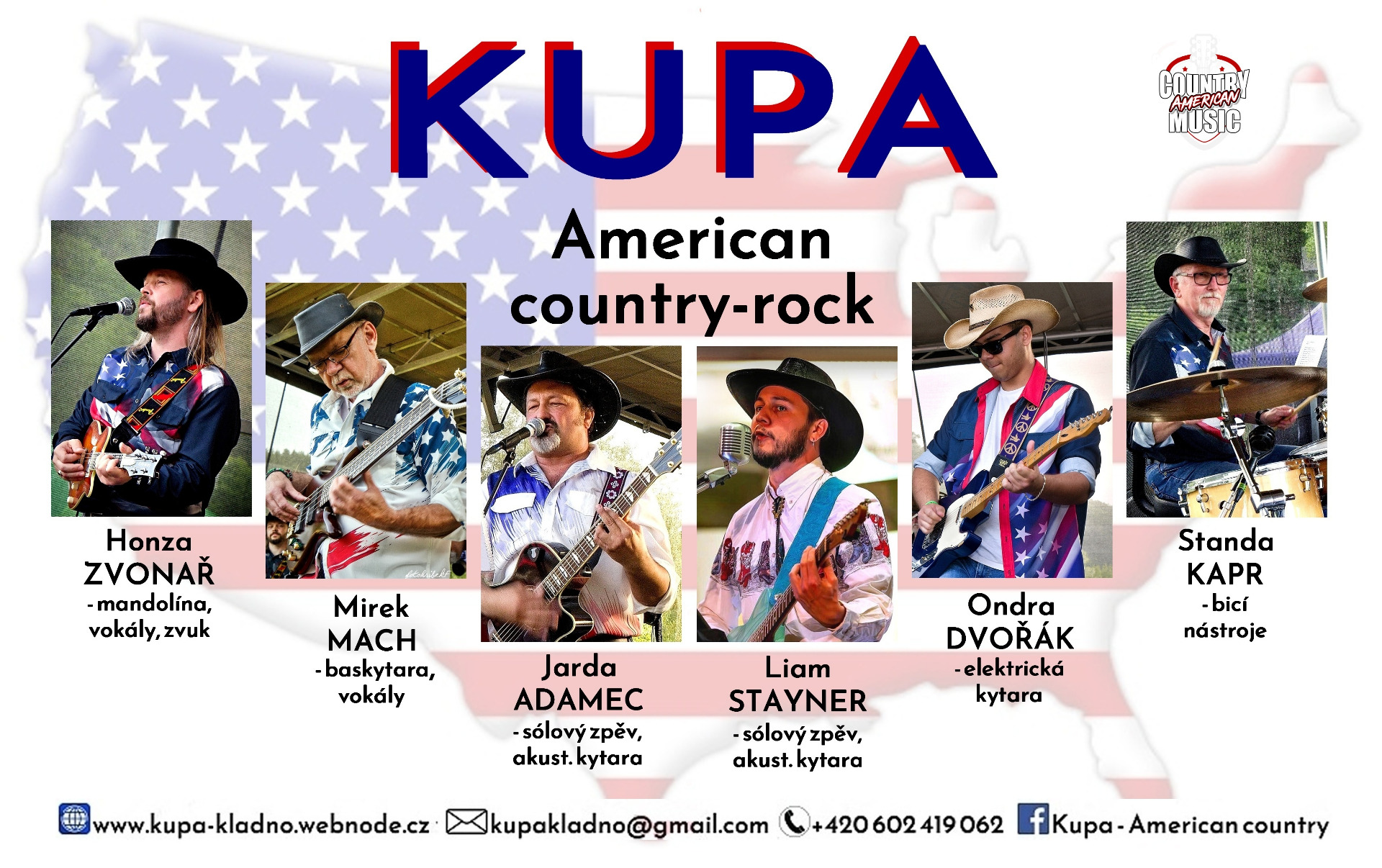 Hudební skupina KUPA působí od roku 1999 aktivně na českých pódiích jako zástupce moderního amerického country. Od svého vzniku se velice rychle etablovala na velkých country koncertech a vystoupila například v Lucerně se skupinou K.T.O.